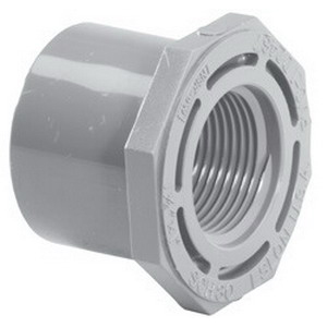 Flush Bushing, Nominal Size: 1/2 X 1/4 IN, Connection Type: Spigot X FNPT, SCH 80 Schedule, Material: CPVC, Material Standard: ASTM D1784 Type IV Grade I Cell Class 23447, ASTM F439, ASTM F437, Finish/Color: Gray, Length: 1-5/32 IN, Temperature Rating: 210 DEG F, Industry Standards: NSF Standard 14 And 61 Certified, Other Physical Dimension: 25/32 IN Spigot Length