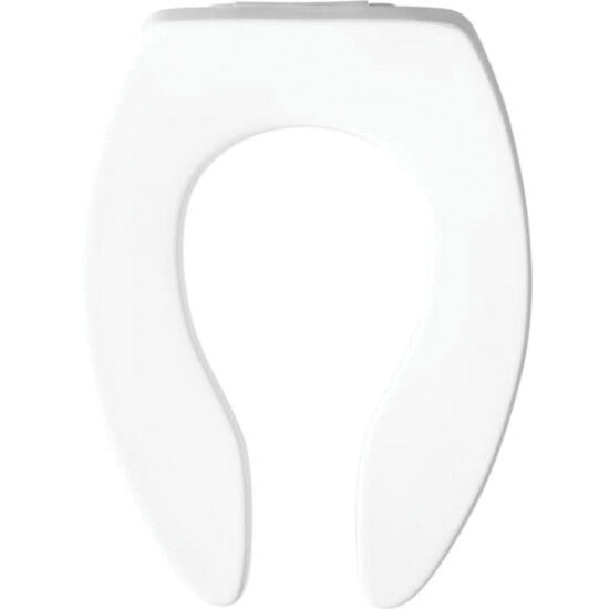 Commercial Heavy Duty Elongated Open Front Less Cover Toilet Seat, Series/Model: Model 9500SSC, Material: Plastic, Finish/Color: White, Length: 18-3/4 IN, 14-5/16 IN Width, 2-5/8 IN Height, Industry Standards: IAPMO Certified/ANSI Z124.5-2013 Listed