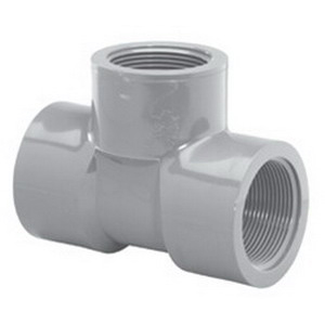 Straight Tee, Nominal Size: 1-1/4 IN, Connection Type: FNPT, SCH 80 Schedule, Material: CPVC, Material Standard: ASTM D1784 Type IV Grade I Cell Class 23447, ASTM F439, ASTM F437, Finish/Color: Gray, Length: 4-11/32 IN, Temperature Rating: 210 DEG F, Other Physical Dimension: 2-5/32 IN Center To End