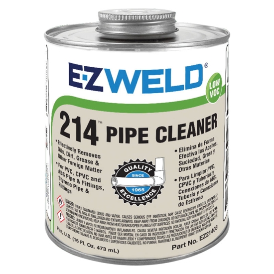 E-Z weld cleaner is a clear blend of solvents formulated as a fast acting cleaner to effectively removes oil and grease from the surfaces of PVC/uPVC, CPVC, ABS and styrene pipe and fittings.