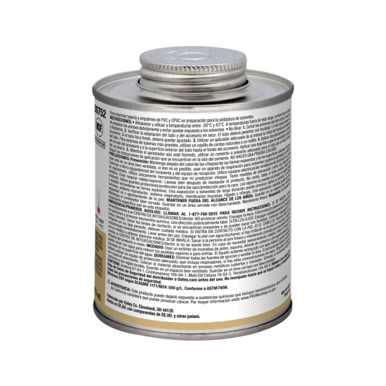 PVC Primer, Size: 16 OZ, Container Type: Can, Clear Color, Form: Liquid, Odor: Ethereal, Specific Gravity: 0.84 Plus/Minus 0.02 At 20 DEG C, Flash Point: -10 To -5 DEG C, VOC: 550 G/L, Industry Standards: NSF Standard 61 For PW, DWV And Sewer Waste, UPC IAPMO Certified, NSF Certified, Meets ASTM F-656, Additional Specifications: Density: 6.97 Plus/Minus 0.2 LB/GAL, Shelf Life: 3 YR, Boiling Point: 151 DEG F