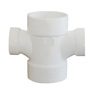DWV Double Sanitary Reducing Tee, Nominal Size: 3 X 3 X 2 X 2 IN, Connection Type: Hub, Material: PVC, Material Standard: ASTM D2665 Type 1 Cell Class 12454B, Industry Standards: ASTM D3311, NSF Listed, UPC Certified
