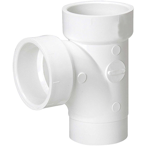 DWV Sanitary Street Tee, Nominal Size: 4 IN, Connection Type: Hub X Hub X Spigot, Material: PVC, Material Standard: ASTM D2665 Type 1 Cell Class 12454B, Industry Standards: ASTM D3311, NSF Listed, UPC Certified, Other Physical Dimension: 5-13/16 IN Center To Female End, 3-13/16 X 8 IN Center To Male End