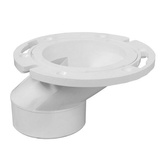 Adjustable DWV Offset Closet Flange With Plastic Ring, Size: 4 X 3 IN, Outside Diameter: 7 IN, Connection Type: Hub, 7/16 IN Thickness, 4-1/4 IN Length, Material: PVC, Material Standard: ASTM D2665 Type 1 Cell Class 12454B, Industry Standards: ASTM D3311, NSF Listed, UPC Certified