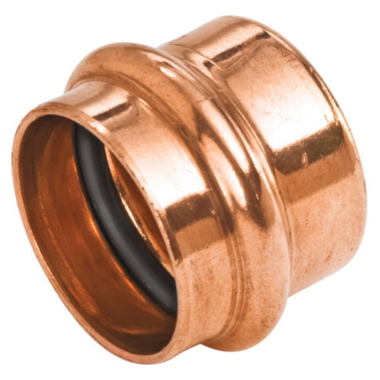 The Nibco® Press System® copper cap features an inboard bead and EPDM o-ring. Simply applying pressure from a pressing tool tightens the o-ring onto the tube, ensuring a clean, watertight seal in seconds with no flame, solder or flux. The cap has a press connection. The fitting is used to fit over the end of pipe to seal the end. Nibco® press fittings are the fastest, easiest way to join copper tubing.