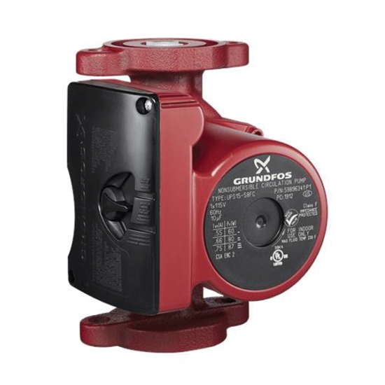 Grundfos UPS15-58FC 3-Speed Cast Iron Bolted Flanged Circulating Pump With Check Valve, 115 VAC, 1/25 HP