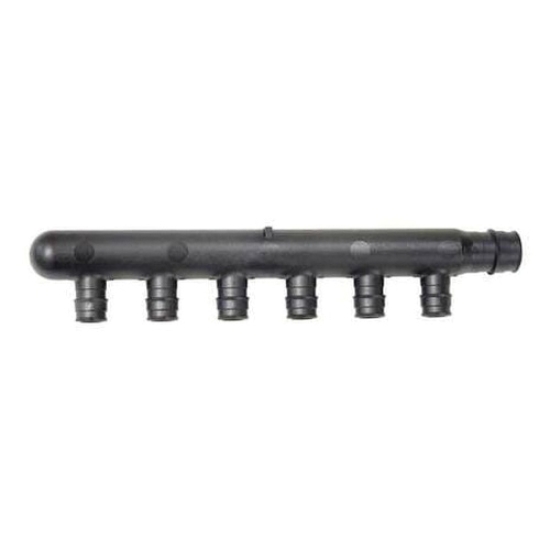 engineered polymer (EP) branch multi-port tees are used in hot and cold domestic potable water distribution systems. The multi-port tees are available with 3/4 IN or 1 IN ProPEX® inlets and 1/2 IN ProPEX® outlets.