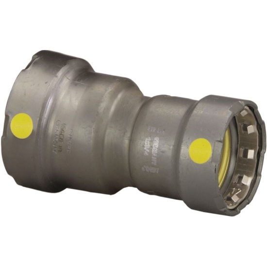 Viega MegaPressG™ 6615.2 Reducer, 1-1/2 X 1-1/4 IN Nominal, Press X Press Connection, Carbon Steel, 4-7/8 IN Length, 125 PSI Fuel Gas, 200 PSI Other Application Maximum Pressure, -40 - 180 DEG F, Industry Standards: ASME B31.1, B31.3, B31.9, CRN 0A14541.5 A/B/C, CSA: ANSI LC 4a/CSA 6.32a, DNV-GL, IAPMO: ANSI LC 4a/CSA 6.32a, ICC-ES: ANSI LC 4a/CSA 6.32a, Lloyd's Register, CAN/CSA-B149.1, Additional Specifications: Includes: HNBR Sealing Elements