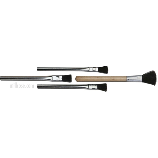 Mill-Rose acid, solder paste and flux and adhesive applicator brushes are made with durable, coated in tin paste metal handles. The handles are stamped firmly to the bristles to eliminate bristle fallout. They are offered in three convenient sizes with pure, stiff black-graded natural horsehair.