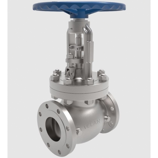 Velan Vertical Body Bolted Bonnet Globe Valve, 2 IN Nominal, Flanged Connection, 85 - 740 PSI, Pressure Class: Class 300, -20 - 1000 DEG F, Wrought Carbon Steel Body, Handwheel Operator, Stainless Steel Stem, Stainless Steel Trim, Alloy Stainless Steel Seat, Other Physical Dimension: 16.85 IN Top To Inlet Center, 10-1/2 IN Inlet To Outlet Length, Additional Specifications: Media: Gas, Oil and Water