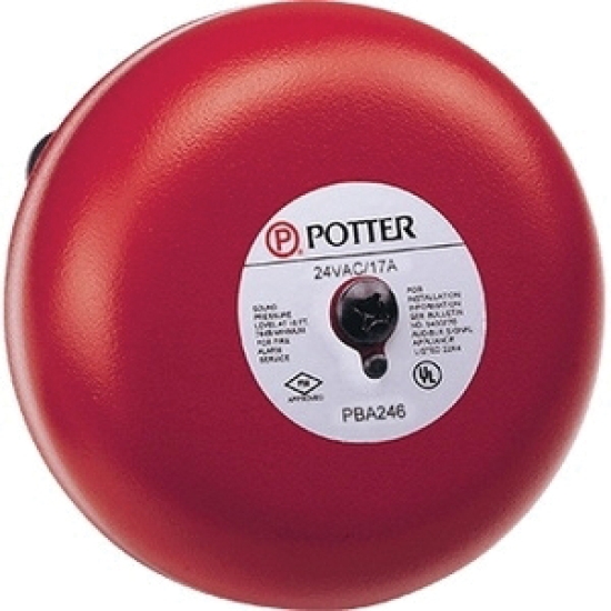 POTTER® PBA12010 Vibrating Alarm Bell, 6 IN, 120 VAC, 0.05 A, Sound Output: 92 DB, Composite/Steel, Finish/Color: Red Powder-Coated, Industry Standards: UL, FM Approved, Additional Specifications: Temperature Range: -40 - 150 DEG F
