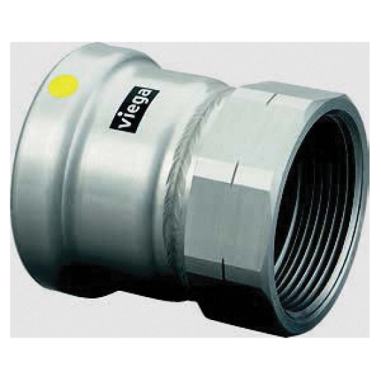 Viega MegaPressG™ 6612XL Adapter, 2-1/2 IN Nominal, Press X FPT Connection, Carbon Steel, 3-7/8 IN Length, 125 PSI Fuel Gas, 200 PSI Other Application Maximum Pressure, -40 - 180 DEG F, Industry Standards: ASME B31.1, B31.3, B31.9, CRN 0A14541.5 A/B/C, CSA: ANSI LC 4a/CSA 6.32a, DNV-GL, IAPMO: ANSI LC 4a/CSA 6.32a, ICC-ES: ANSI LC 4a/CSA 6.32a, Lloyd's Register, CAN/CSA-B149.1, Additional Specifications: Includes: HNBR Sealing Elements