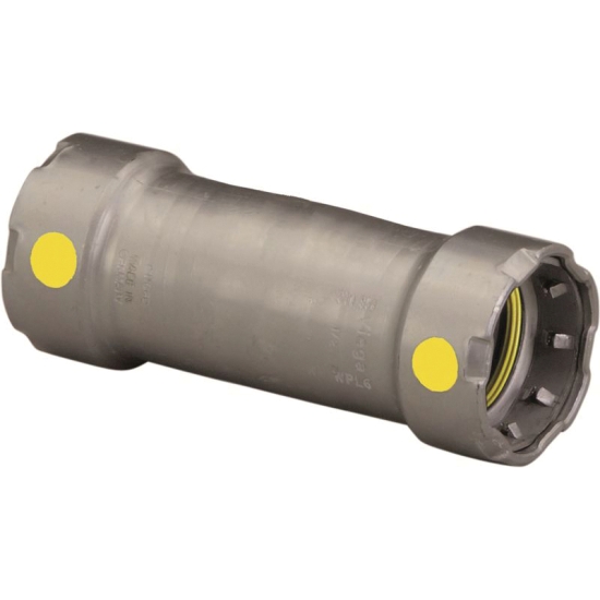 Viega MegaPressG™ 6615.3 Coupling Without Stop, 1-1/4 IN Nominal, Press X Press Connection, Carbon Steel, 5-5/16 IN Length, 125 PSI Fuel Gas, 200 PSI Other Application Maximum Pressure, -40 - 180 DEG F, Industry Standards: ASME B31.1, B31.3, B31.9, CRN 0A14541.5 A/B/C, CSA: ANSI LC 4a/CSA 6.32a, DNV-GL, IAPMO: ANSI LC 4a/CSA 6.32a, ICC-ES: ANSI LC 4a/CSA 6.32a, Lloyd's Register, CAN/CSA-B149.1, Additional Specifications: Includes: HNBR Sealing Elements