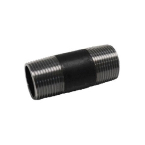 Carbon welded steel pipe nipples conform to material standard ASTM A53 and ASTM A733 for dimensions. Offered as list and discount, standard black and galvanized (up to 6 IN diameter), extra heavy (XH) black and galvanized, butt nipples, right/left nipples, black and galvanized ready cut nipples (up to 2 IN diameter), display racks for ready cut nipples and black, galvanized and extra heavy black assortments (1 pack, 3 pack, 6 pack, 25 pack, tote trays).