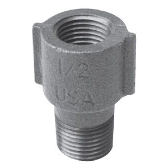 WARD MFG Extension Piece, Pressure Class: Class 150, 1/2 IN Nominal, FNPT Connection, Malleable Iron, Material Standard: ASME B16.3, Finish/Color: Black, 300 PSI Maximum Pressure, -20 - 150 DEG F, Other Physical Dimension: 1.95 IN Height, 0.43 IN Internal Thread, 0.53 IN External Thread, 1.41 IN Take-Out End, Domestic/Import: Domestic