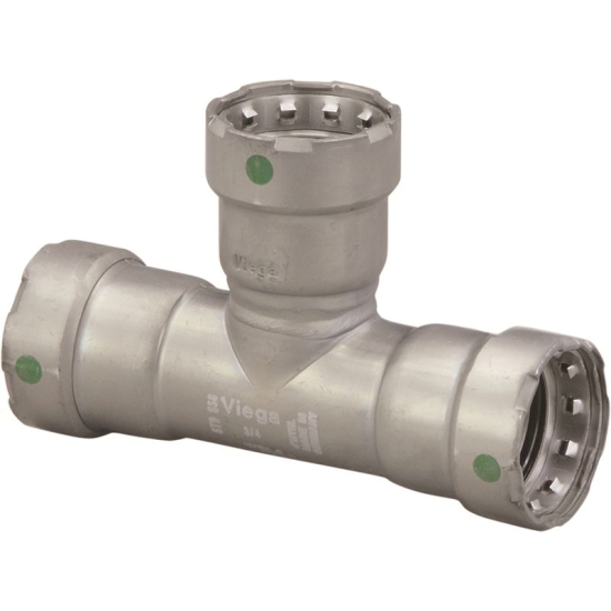 Viega MegaPress® 4818 Reducing Tee, 1-1/4 X 1-1/4 X 1/2 IN Nominal, Press X Press X Press Connection, Carbon Steel, 3-1/4 IN Length, 200 PSI Maximum Pressure, -20 - 250 DEG F, Industry Standards: UL 213, FM 1920, IAPMO PS117, ICC LC1002, CRN #OA14541.6, ABS, GL, NFPA 13,13D, 13R, 31, 54 and 58, ASME B31, Additional Specifications: Includes: EPDM Sealing Elements