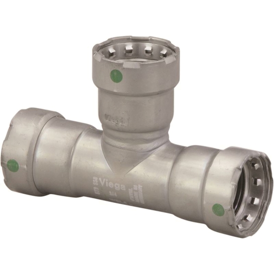 Viega MegaPress® 4818 Reducing Tee, 1-1/4 X 1-1/4 X 3/4 IN Nominal, Press X Press X Press Connection, Carbon Steel, 3-1/4 IN Length, 200 PSI Maximum Pressure, -20 - 250 DEG F, Industry Standards: UL 213, FM 1920, IAPMO PS117, ICC LC1002, DNV, CRN #OA14541.6, ABS, GL, LR, CAL Fire, Additional Specifications: Includes: EPDM Sealing Elements