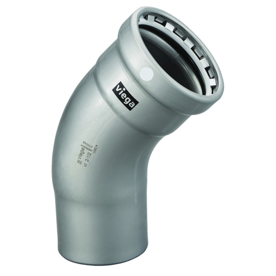 Viega MegaPress® 4826.1XL 45 DEG Street Elbow, 4 IN Nominal, Press X Fitting Connection, Carbon Steel, 200 PSI Maximum Pressure, 14 - 284 DEG F, Industry Standards: FM 1920, ICC LC1002, CRN #OA14541.6, IAPMO PS117 Certified, ASME B31, NFPA 13, 13D and 13R, 31, 54 and 58, Additional Specifications: Includes: FKM Sealing Elements