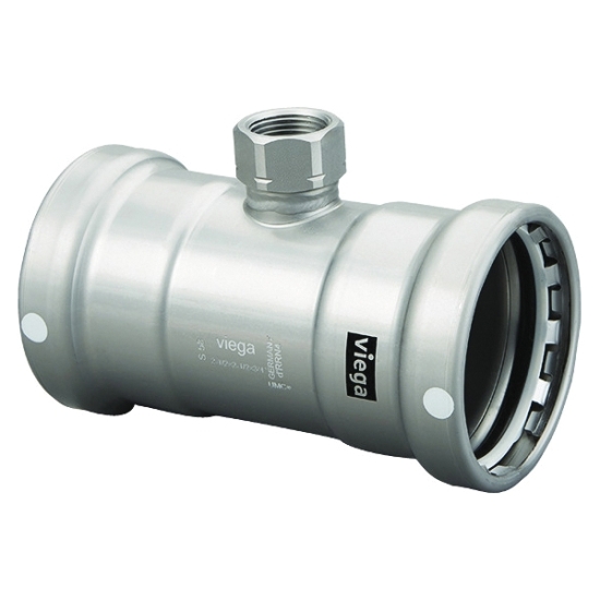 Viega MegaPress® 4817.2XL Tee, 2-1/2 X 2-1/2 X 3/4 IN Nominal, Press X Press X FNPT Connection, Carbon Steel, 3-1/8 IN Length, 200 PSI Maximum Pressure, -20 - 250 DEG F, Industry Standards: UL 213, FM 1920, IAPMO PS117, ICC LC1002, DNV, CRN #OA14541.6, ABS, GL, LR, CAL Fire, Additional Specifications: Includes: FKM Sealing Elements