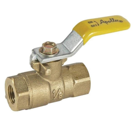 Apollo Valves Ball Valve, Type: Mini, Full Port, Item Name: Ball Valve, Series/Model: 94MBV Series, 1/4 X 1/4 IN Nominal, MNPT X FNPT Connection, 600 PSI, -40 to 300 DEG F, Brass Body, Reversible Handle Operator, Brass Stem, TFE Seat, Finish/Color: Yellow, Industry Standards: ANSI Z21.15-2009/CSA 9.1-2009, ASME B16.44-2002, MSS-SP-110, Prop 65 Warning, Other Physical Dimension: 1.95 IN Inlet to Outlet Length, 1.09 IN Top to Inlet Center