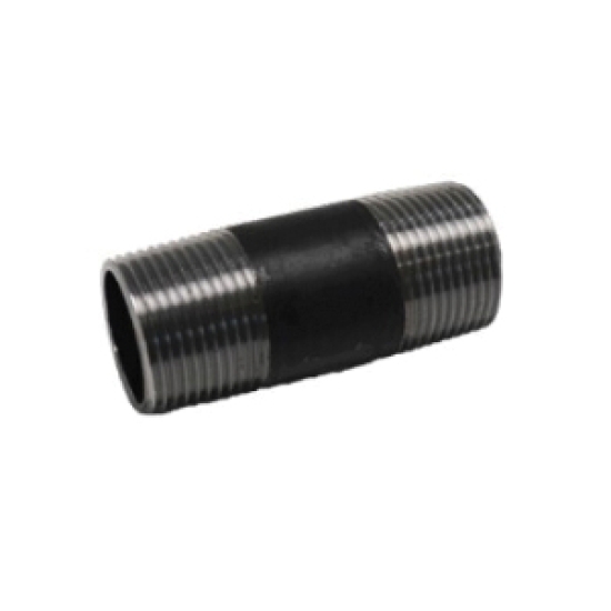 Carbon welded steel pipe nipples conform to material standard ASTM A53 and ASTM A733 for dimensions. Offered as list and discount, standard black and galvanized (up to 6 IN diameter), extra heavy (XH) black and galvanized, butt nipples, right/left nipples, black and galvanized ready-cut nipples (up to 2 IN diameter), display racks for ready-cut nipples, and black, galvanized and extra heavy black assortments (1 pack, 3 pack, 6 pack, 25 pack, tote trays).