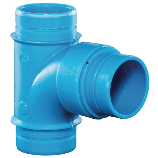 Blueline FRPP sanitary tees are used in chemical waste drainage applications such as laboratories in schools, universities and research facilities. They're molded from proxylene Blueline resin, a flame-retardant thermoplastic material with excellent resistance to most common and organic mineral acids and their salts, strong and weak alkalis and most organic chemicals. There are two methods for joining fittings and pipe. The No-Hub mechanical joint is an economical, fast and easy method that requires only standard hand tools. No-Hub uses a stainless steel outer coupling to create tight, leak-free and reconfigurable joints. The Rionfuse CF electrofusion joining system makes it easy-to-create strong joints that resist aggressive acids and chemicals. A heavy gauge wire is molded into the Rionfuse coupling and permanent hermetically sealed joints can be made quickly with the Rionfuser electrofusion machine.