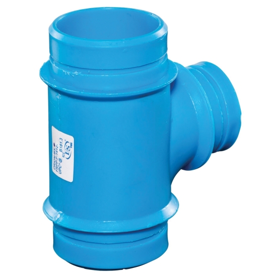 Blueline FRPP reducing sanitary tees are used in chemical waste drainage applications such as laboratories in schools, universities and research facilities. They're molded from proxylene Blueline resin, a flame-retardant thermoplastic material with excellent resistance to most common and organic mineral acids and their salts, strong and weak alkalis and most organic chemicals. There are two methods for joining fittings and pipe. The No-Hub mechanical joint is an economical, fast and easy method that requires only standard hand tools. No-Hub uses a stainless steel outer coupling to create tight, leak-free and reconfigurable joints. The Rionfuse CF electrofusion joining system makes it easy-to-create strong joints that resist aggressive acids and chemicals. A heavy gauge wire is molded into the Rionfuse coupling and permanent hermetically sealed joints can be made quickly with the Rionfuser electrofusion machine.