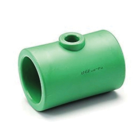 Aquatherm Pipe Reducing Tee, Item Name: Pipe Reducing Tee, 1 X 1 X 3/4 IN Nominal, Socket Weld Connection, Fusiolen® PP-R, Finish/Color: Green, Domestic/Import: Domestic