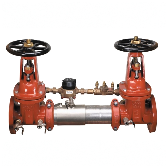 This Colt™ 4 IN double check detector backflow preventer assembly is designed to prevent the reverse flow of fire protection substances and water of non-potable quality from being pumped or siphoned into the potable water supply due to backsiphonage and or back pressure in accordance with national plumbing codes and water authority requirements. It is ideal for protection at cross-connections identified as non-health hazards such as on fire sprinkler systems and from other contaminants found at the service line entrance. This compact modular design with a single access sleeve for easy maintenance is approved for horizontal or vertical installation in accordance with the direction of the flow arrow on the assembly. It consists of a stainless steel body, tri-link check valves, outside stem and yoke resilient seated gate valves and four test cocks. It comes furnished with a gallon per minute meter to detect underground leaks and unauthorized water use.