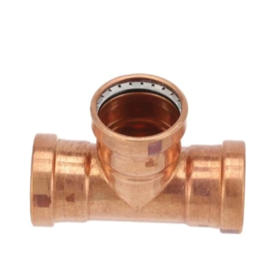 Viega ProPress® Reducing Tee, Reducing Tee, 300 PSI Maximum Pressure, 2-1/2 X 1 X 2-1/2 IN Nominal, 0 - 250 DEG F, 7.67 IN Length, Series/Model: Model 0918XL, Copper, 2.014 LB Weight, Other Physical Dimensions: 3.52 X 3.6 X 4.15 IN Center To End, Industry Standards: ASME B16.18, ASME B16.22, ASME B16.26, ASME B16.51, IAPMO PS-117 Certified, NSF/ANSI-372, ProPress®