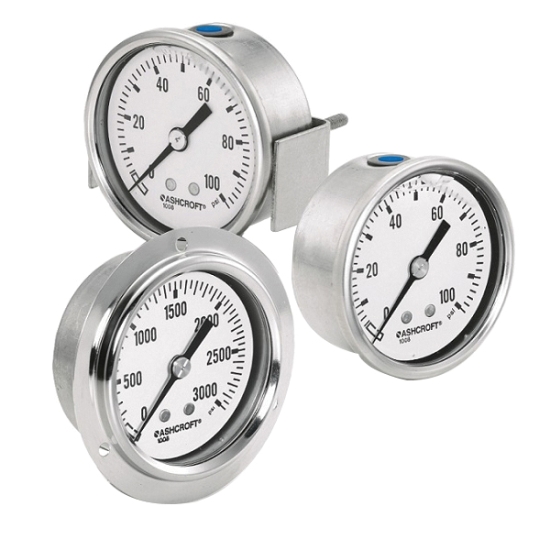 The Ashcroft® 40/50/63/100 MM 1008S pressure gauges are an excellent solution for pressure measurement in harsh environments. These gauges offer exceptional quality and reliability in an all stainless steel pressure gauge. The sealed case protects from ambient conditions and includes features enhancing product performance and safety. The 40/50 MM gauges are ideal for limited space installations.