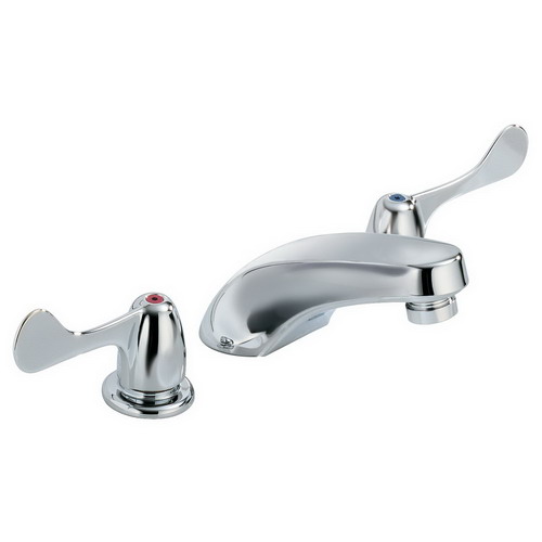 Widespread Lavatory Faucet, Manual Operation, 2 Handles, Handle Type: Lever, 1/2-14 Inlet Size, Connection Type: NPSM, Flow Rate: 1.5 GPM At 60 PSI, 5.7 L/MIN At 414 KPA, 3 Holes, 6 - 16 IN Faucet Centers, Material: Solid Brass, Finish/Color: Chrome Plated, Mounting: Deck, 4-3/4 IN Spout Reach, 3-1/8 IN Spout Total Height, 2-7/16 IN Spout Height Deck To Aerator, Valve Type: Washerless Stem Cartridge, ADA Compliant: Yes, Industry Standards: CSA B125 Certified, ASME A112.18.1, ADA Compliance To CABO/ANSI A117.1