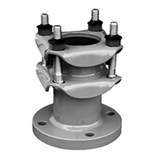Fabricated from high-strength steel, Dresser style 128 flange adapters are offered standard up to 24 IN diameter in steel and cast iron pipe sizes. The compression end of the adapter has a Dresser coupling-type design utilizing a wedge gasket for an efficient, leak-proof seal.