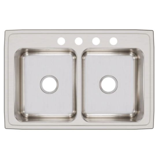 Elkay LR3322 Lustertone® Lustrous Highlighted Satin 18 GA 304 Stainless Steel Top Mount Kitchen Sink, 2-Bowl, 4-Faucet Holes