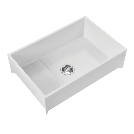 Rectangle Mop Service Basin, 3 IN Drain, Material: Molded Stone, Finish/Color: White, Length: 24 IN, 36 IN Width, Other Physical Dimension: 10 IN Depth