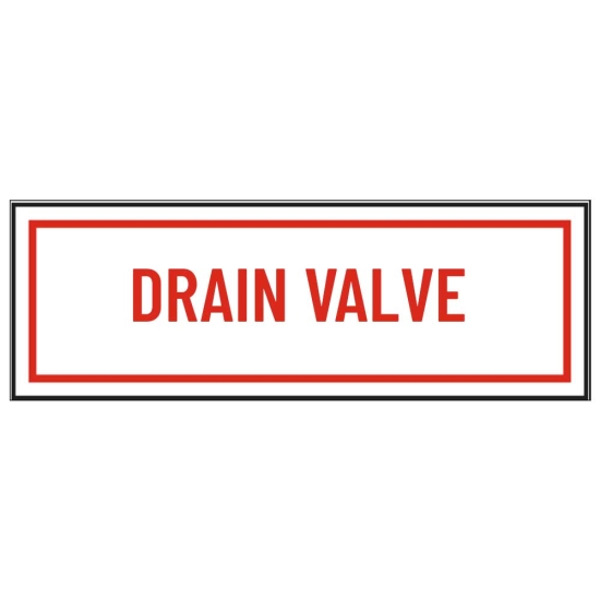 Identification Sign, Legend: DRAIN VALVE, Material: 0.02 IN Aluminum With Removable Plastic Coating, Red Legend, White Background, Length: 6 IN, 2 IN Width, Industry Standards: Meets NFPA 13 Requirements
