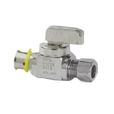 Viega PureFlow 2842.3ZL Chrome Plated Lead Free Brass 1/4 Turn PEX Straight Stop Valve, 3/8 IN, Press