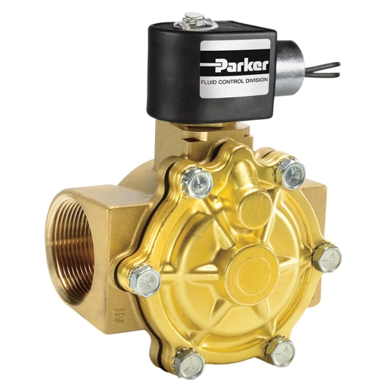 Parker 2-way normally closed, 1-1/4 IN NPT steam valves provide operating pressures of 50 PSI and flow factors of 15 CV's. They have a brass body, offer multiple coil options and are made for high temperature water and steam applications.