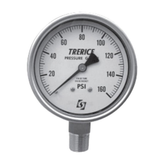 The Trerice 700 series industrial gauge is designed for the varying needs of the world's industrial applications. This gauge has a stainless steel case and ring. Its sturdy interior design and field liquid-fill capability (no kit required) provide the durability and accuracy required for industrial process environments. Available wetted parts are bronze tube with brass socket, stainless steel tube and socket, or monel tube and socket.