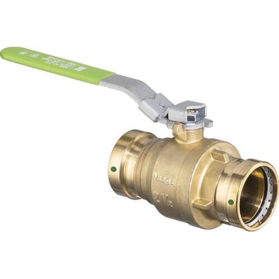 Viega ProPress® Ball Valve, Type: 2-Piece, Full-Port, ProPress®, Ball Valve, Series/Model: Model 2971.1XL, 2-1/2 IN Nominal, Connection Type: Press, 300 PSI Operating, 300 PSI (CWP), 0 - 250 DEG F, Brass Body, Lockable Handle Operator, Steel Handle, Brass Stem, PTFE Seat, EPDM Seal, Material Specification: UNS C27453, UNS C27450, Finish/Color: Chromium Plated Ball, Geomet Plated Handle, Industry Standards: IAPMO/ANSI Z1157, NSF-61, NSF-372, NSF Certified, 15.13 IN Width, Lead Free: Yes, Other Physical Dimension: 11.22 IN Handle Length, 4.02 IN Inlet Center To Top Of Handle, Additional Specifications: Ball Material: Brass, Handle Cover Material: Polyvinyl, 8.706 LB Weight